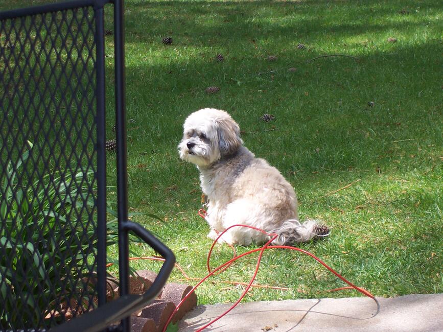 Dudley, a Lhasa mix, was a little rough around the edges when I rescued him around Halloween, 2005. He had issues, but he soon bonded with me and became part of my family. I've never loved a pet as much as I loved Dudley. He was energetic and a loyal companion until the end. His passing hit me very hard, and I still think of him every day. He loved to take a walk, chase the stuffed animal toys I tossed around, and explore our back yard. In his younger days, he would run off to explore the neighborhood, but always came back. He didn't care for other dogs or strangers, a behavior he picked up from his early days on the street. He loved to look out a window and watch for squirrels, birds, and people. I expect he'll be watching for me when I cross the Rainbow Bridge. I love you, Dudley.