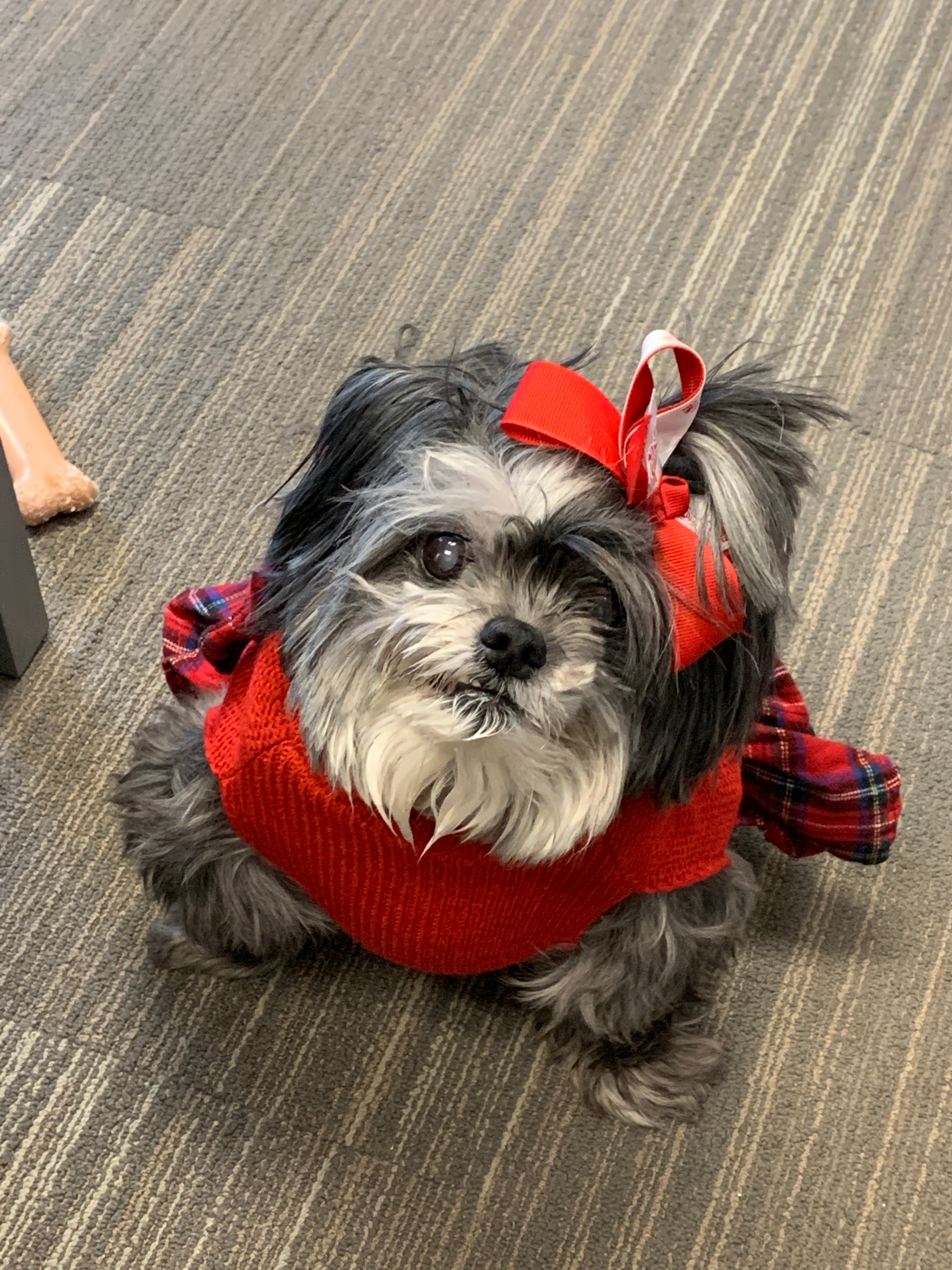 This beautiful furbaby was my faithful companion through some of the lowest times in my life. When my life took drastic turns, she was right there with me and didn't miss a beat. She was the perfect work bestie, going to work with me everyday for 6 years. She had hundreds of outfits with matching hair bows. We had a routine and she knew every step, even when she could no longer see and could barely hear. She loved going to work to see everyone especially her pal, Lenny, also a rescue. Rue Anne even had her own company uniform with the logo embroidered on it. This special soul was just that, very special. It seems as though everyone agreed! She was my traveling companion wherever I could take her! I believe she is my furbaby angel and helped me to move on after her passing. After her passing, about 1 month later, I brought home a little boy shih tzu named Romeo who had been terribly abused. He bears the scars of that abuse in temperament and with the facial deformities due to a fractured jaw bone. I believe Rue waited to cross over until she found me Romeo. After Rue Anne's passing which happened at home with her in my arms, I continued to hear her little click clack of her toes and her coughing at night. Occasionally I would even see a little tiny shadow pass me to remind me she was close. On the 2nd day after adopting Romeo, those sounds were gone and never returned. Rue Anne had fulfilled her angel duties. My day to day life is much different without her here, but I am continuing to bring hope to Romeo and give him his best life in her honor. Rue Anne is lovingly remembered and missed everyday.