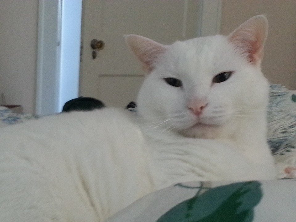 Thor owned me since he was a tiny kitten, and I brought him home to Austin from Galveston. He feared nothing (except thunder). He eventually grew to nearly 22 lbs, but then in his later years slimmed to a svelte 18. He was all white, and had glowing golden green eyes. He was sometimes a lover, and sometimes a biter, but he was a good brother to our other cat, Precious, and brought me joy for the 18 years and 8 months I was honored to call him mine.