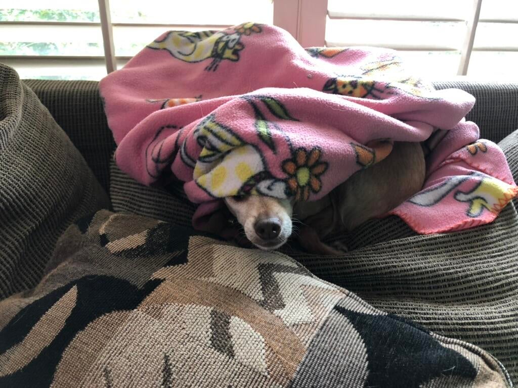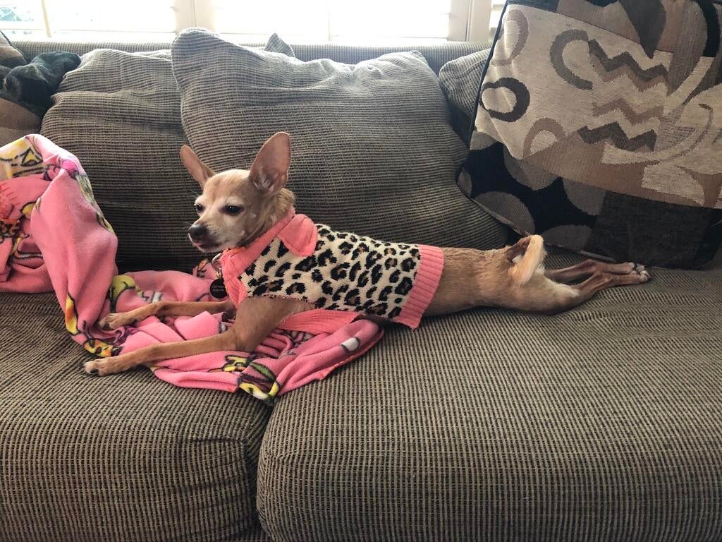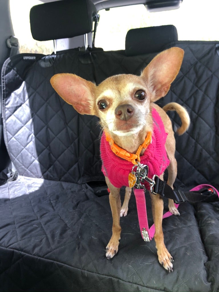 It was a cold rainy day at Best Friends Los Angeles at the beginning of COVID and the shelter asked volunteers to foster dogs to help reduce staff hours. Didi, a 7 year old chihuahua was skin and bones and looked so miserable in her kennel, I chose her to foster and I brought her home for a week. And she bonded with my wife Lyle instantly! Of course she never left! Didi was part of our family for 5 years until a sudden illness sent her to the rainbow bridge at age 12. She was a tough cookie at first, she barely tolerated me for about a year! 🙂 She was a third wheel to our two other little dogs and loved to swoop in and steal their food, but she made a place for herself in our home. Patience pays off and I eventually earned Didi’s trust and I would look down to see she had cuddled up next to me with her head on my lap. But she loved Lyle and followed her around the house, and would watch Lyle practicing violin. First in line for breakfast or dinner, relentlessly protective with the spirit of a huge dog, lover of treats, excellent traveling companion, and champion sleeper always making a nest of blankets on the couch to sleep in. This little ten pound soul has left a huge hole in our home. Rest in peace little girl.
