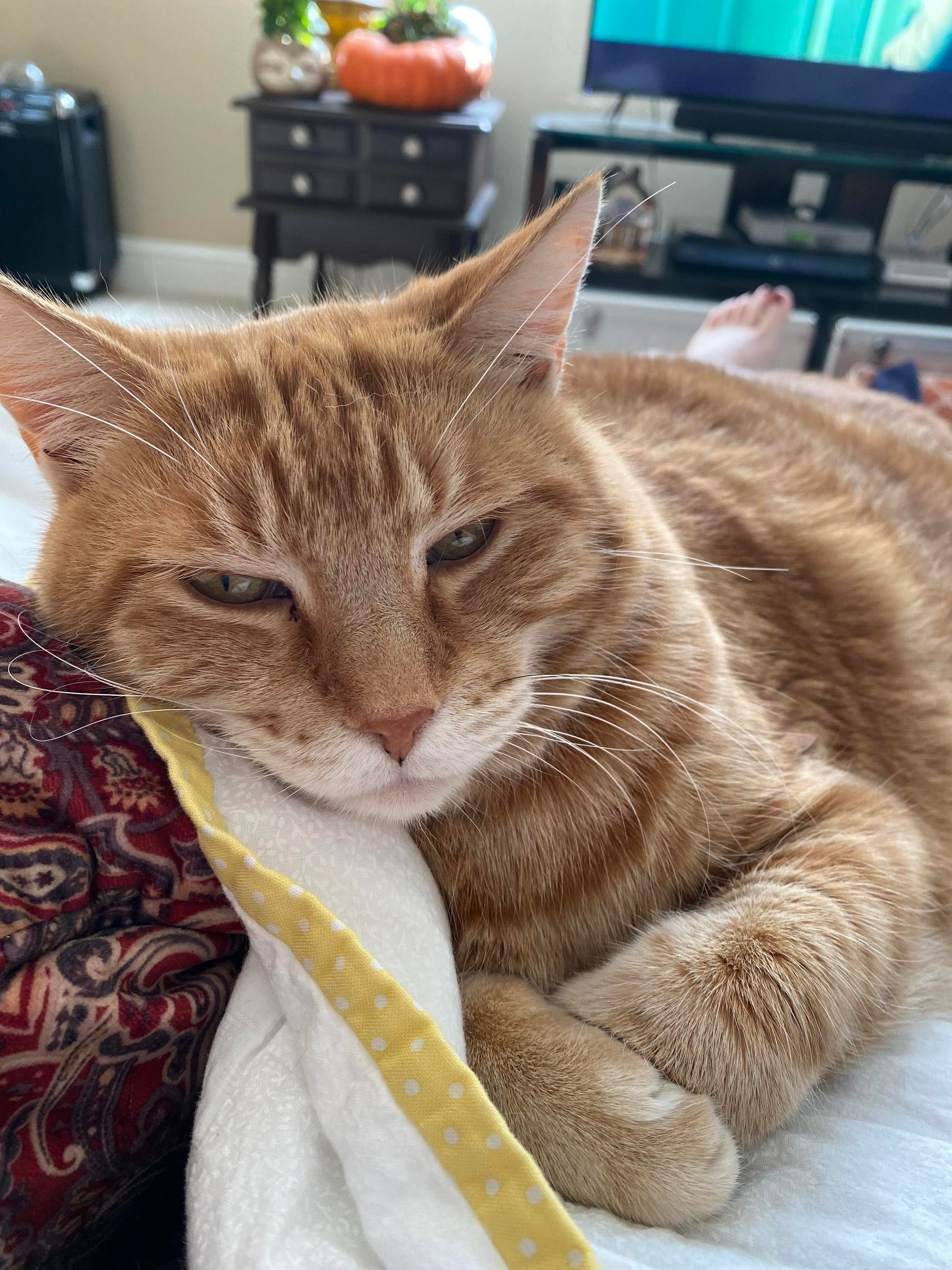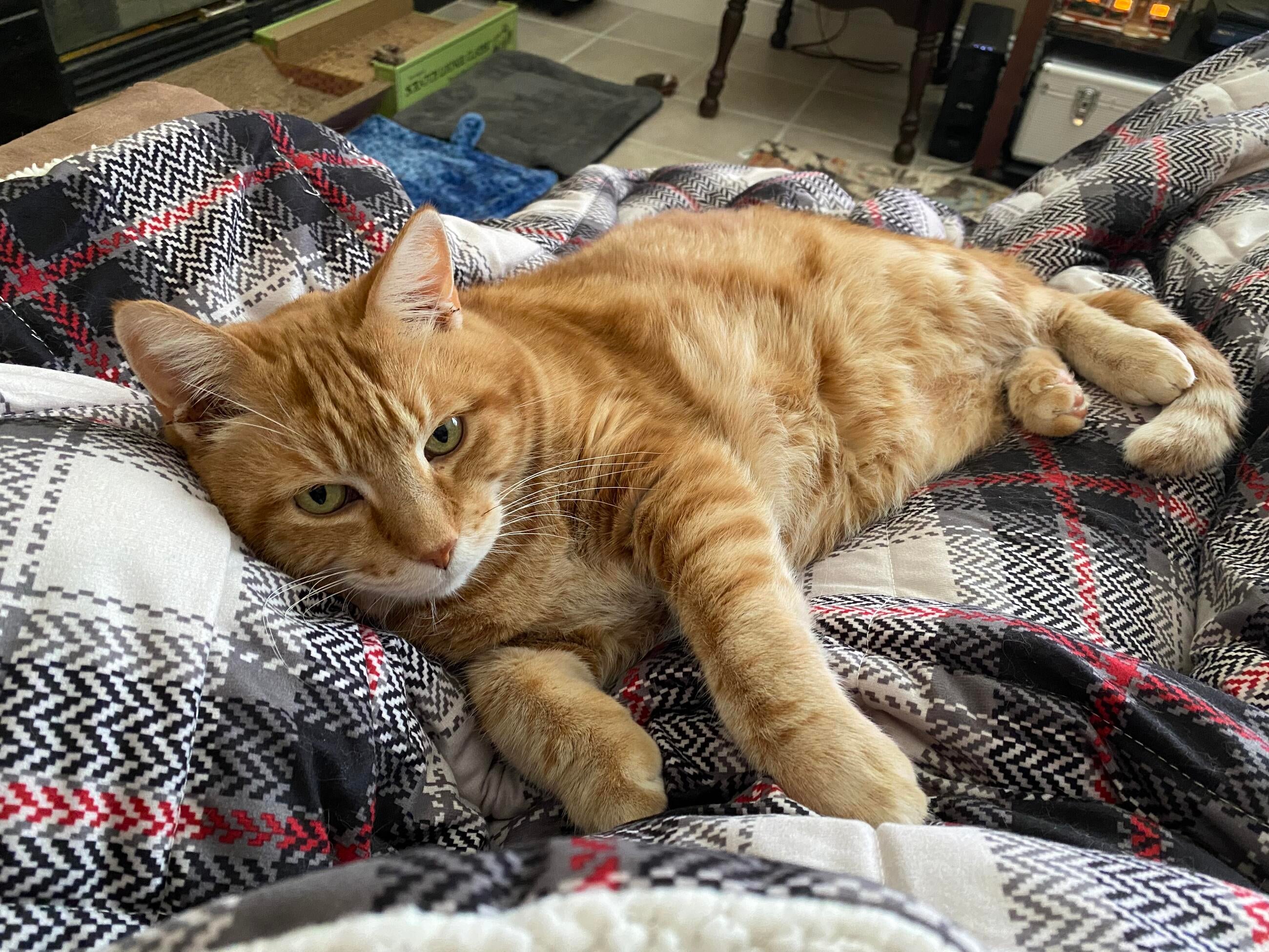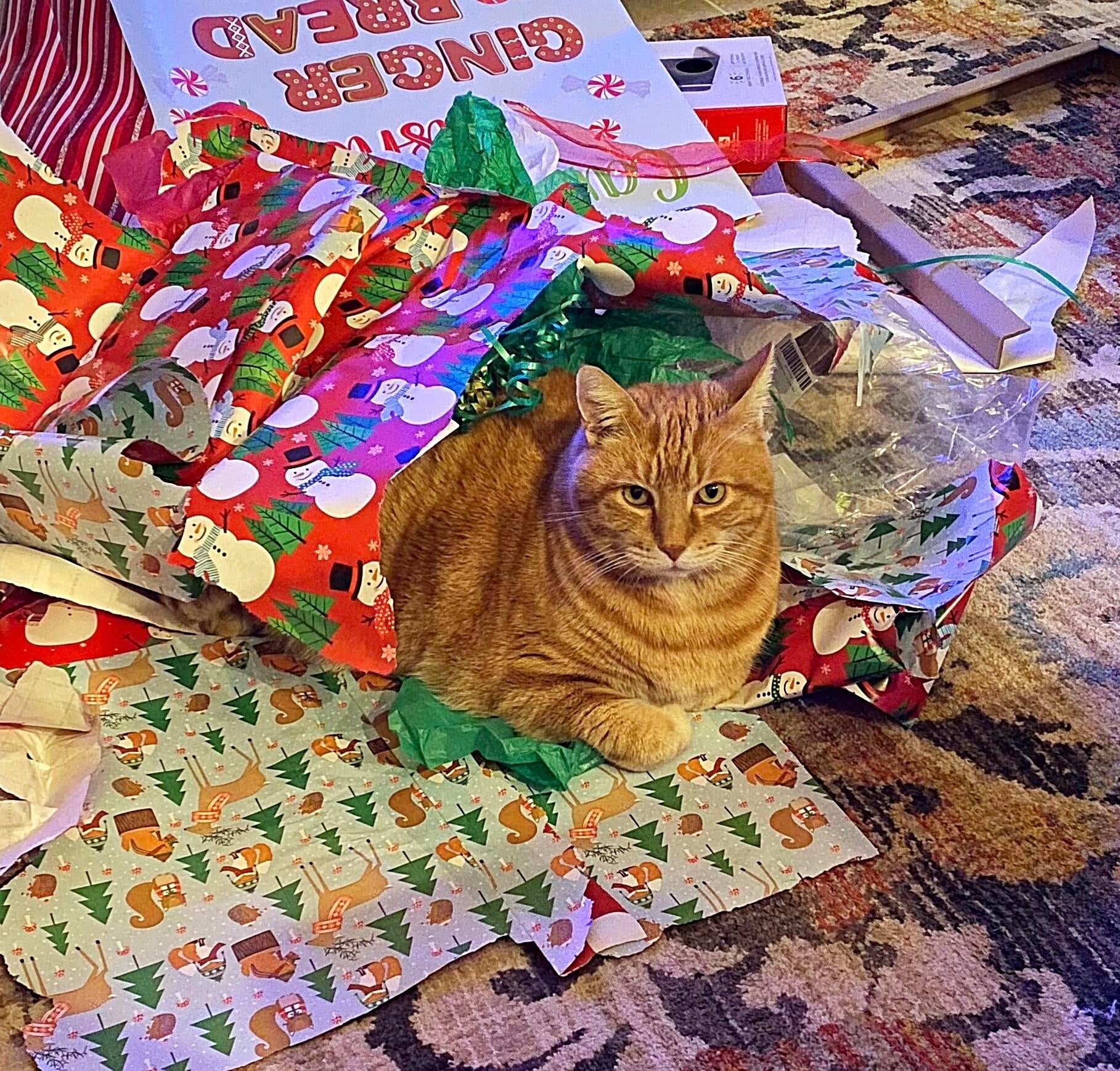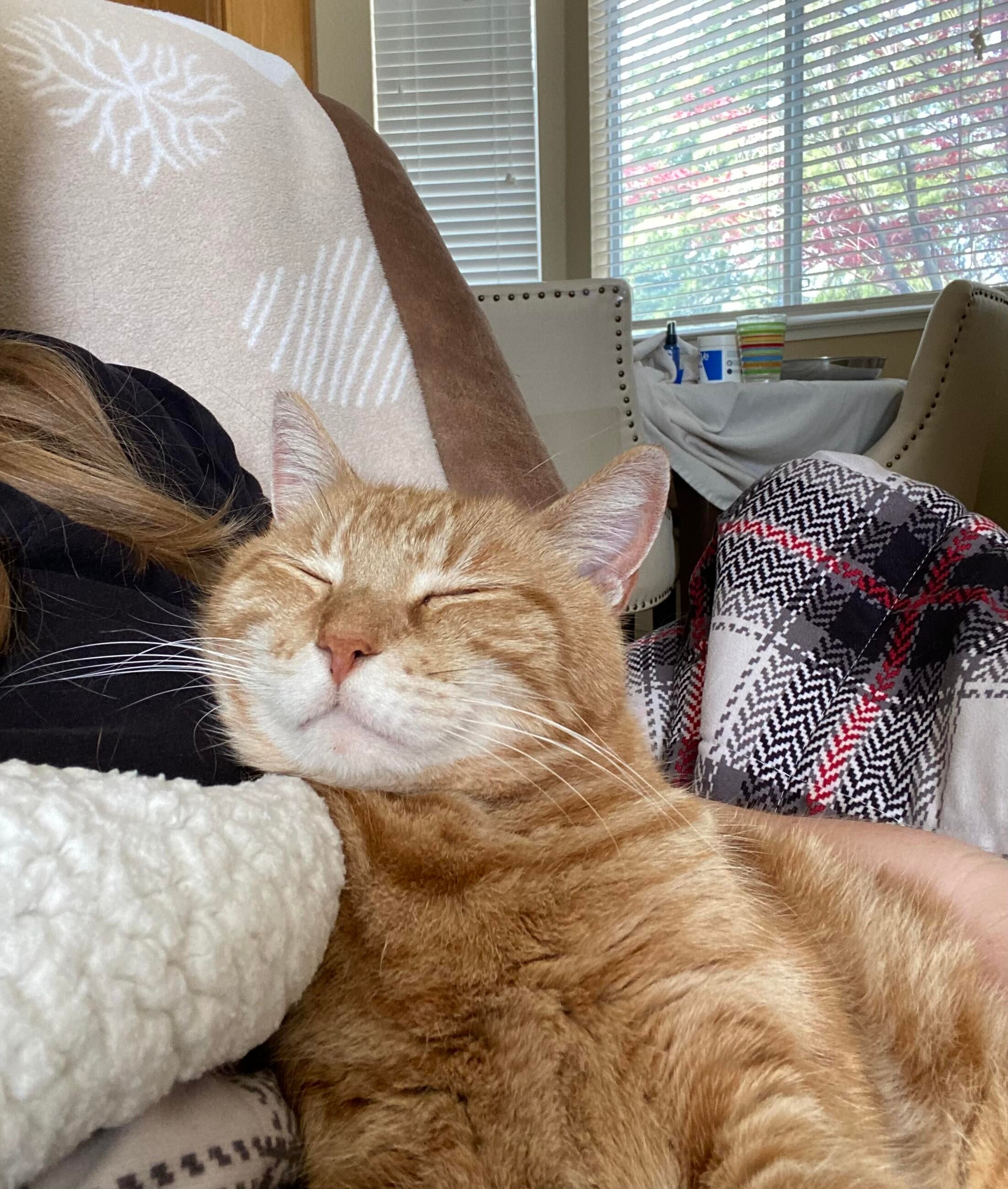 A cat like Tigger deserved a stable, secure and loving home for the remainder of his years. Tigger came home with me in June 2017 and we had an instant bond. He was my shadow, and was always near me whether he was following me around the house while I did ordinary chores, greeting me from the grocery store and inspecting my bags of goodies, helping me open Christmas presents, watching me from the sunroom while I was gardening, joining me on video calls for work meetings, or just lounging while we watched TV. One of our favorite shows to watch around the holidays was the Garfield Christmas special as it reminded us of both Tigger and grandma. He had a big personality unlike other cats I had (after all he was an orange kitty) and filled our home with so much love.