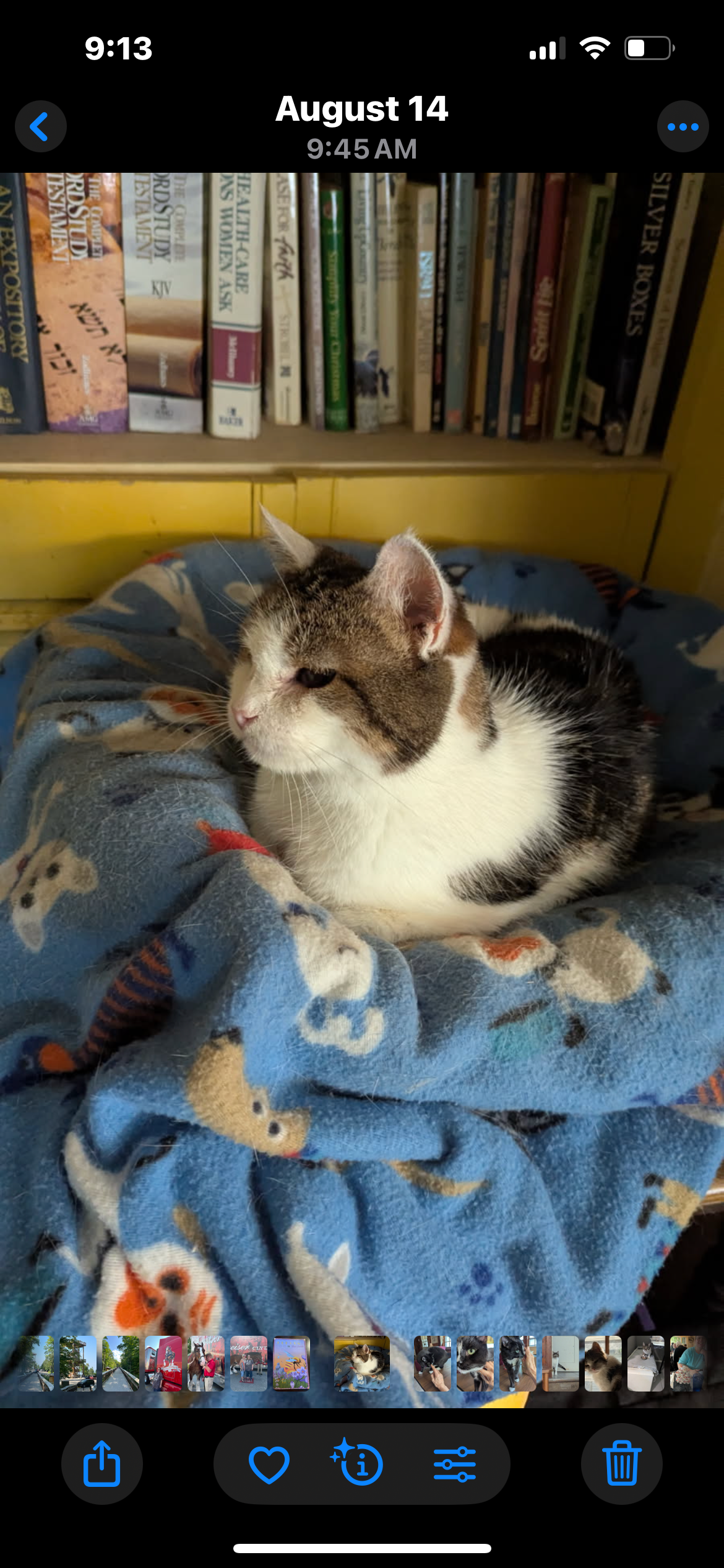 Chloe was the diva in our home, socially confident, spunky, fearless but uber affectionate with everyone. I (Karen) had a special relationship with her & she often slept near or on my head purring loudly. I miss her so.