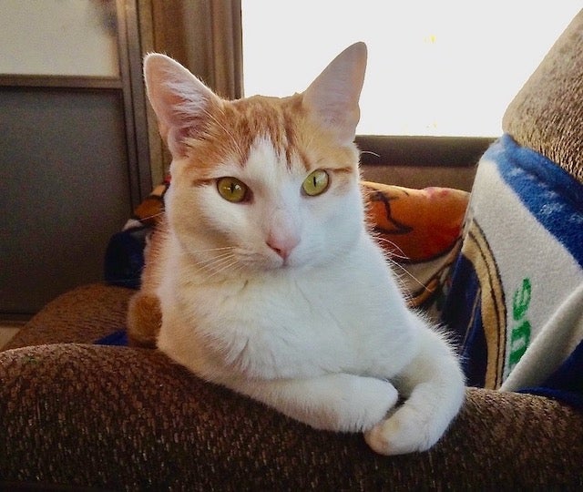 Bailey was our "shy boy" cat who only came out for a few, but LOVED his family so much. Our Sweet Boy was definitely "Daddy's boy" sleeping in Dad's arms every morning. He loved to play with "puff balls" and sit outside in the sunshine with Dad. Bailey was our long, sleek boy cat who was our "golden boy." Deeply missed and forever loved.
